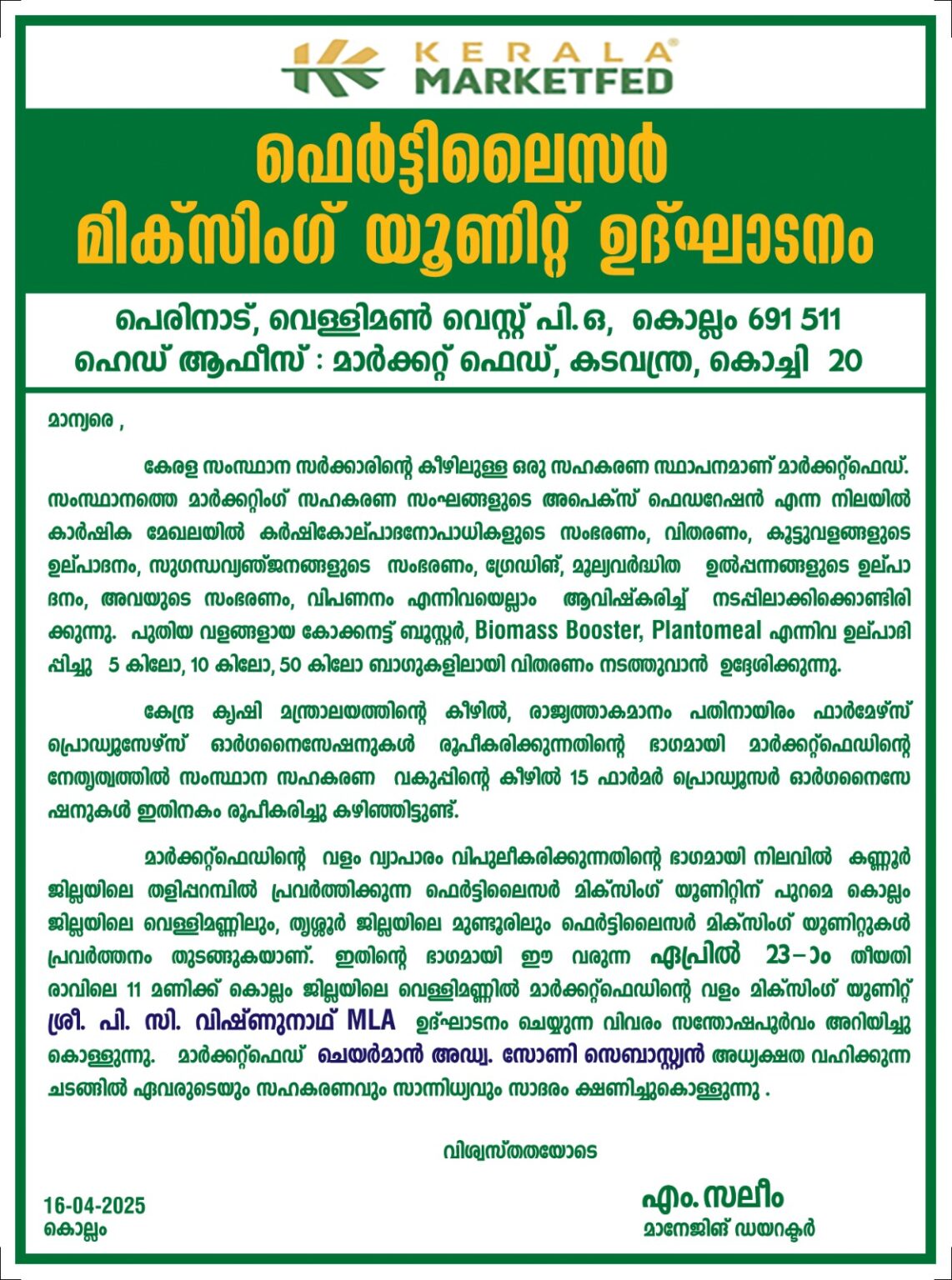 Inauguration of Fertilizer mixing unit at Kollam