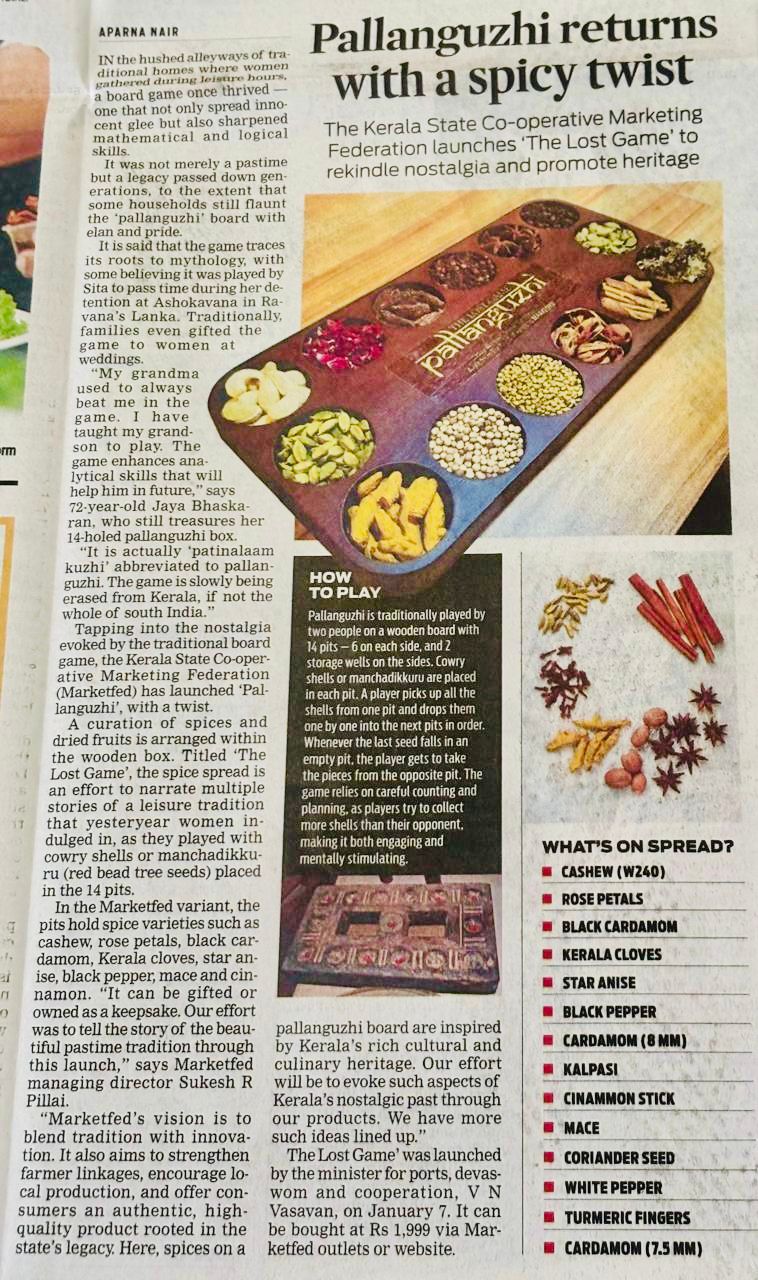 Pallanguzhi Spice Box Launched by Honourable Minister of Cooperation, Ports & Devaswam Shri V N Vasavan. Handed over the box to Shri Koliyacode Krishnan Nair Read in Manorama news